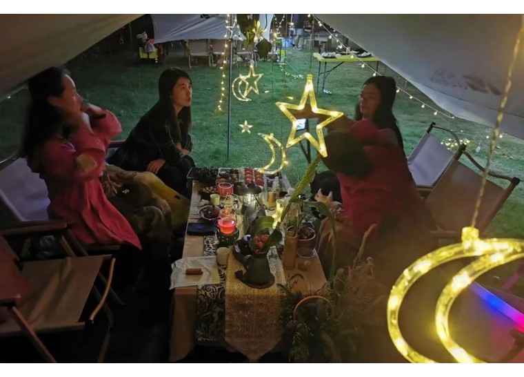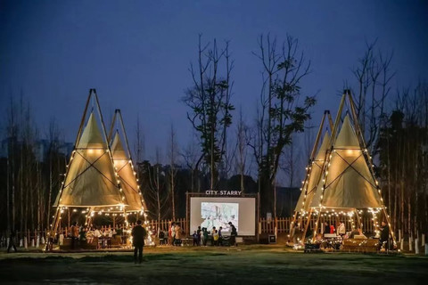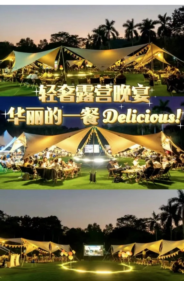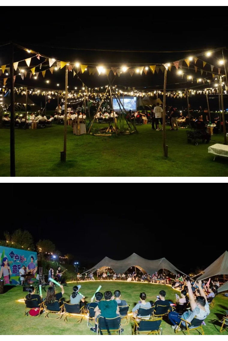 轻奢露营区主推 “一日不过夜露营 ”产品,结合营地产品业态 ,解决客户露营刚需,打造好吃好玩好拍的轻松露营体验。超大、多个草坪区,可以为主题派对、企业团建、节日活动、发布会、音乐节等主题活动,提供个性化服务需求。