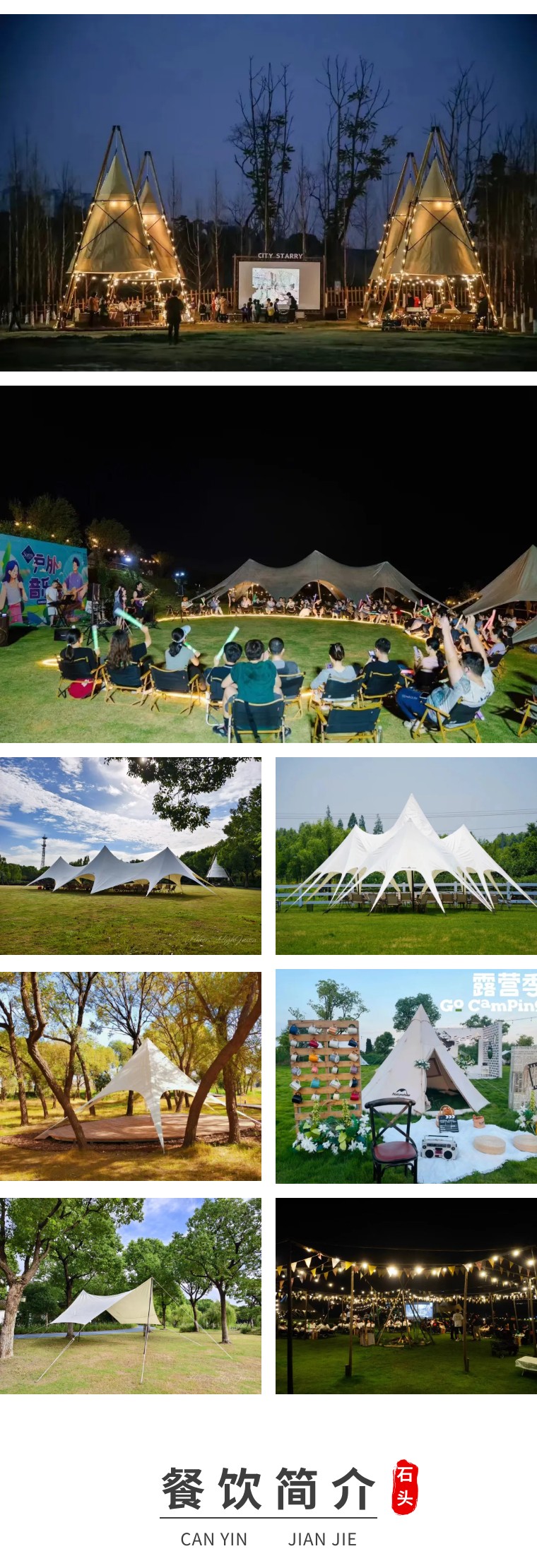 餐 饮:不限量烧烤、韩式烤肉、露营火锅、咖啡轻餐