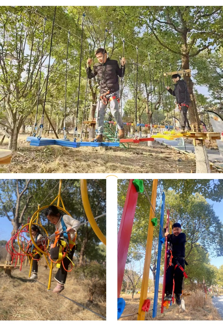 穿梭在郁郁葱葱的树林间,挑战各种有趣的关卡。脚踩晃晃悠悠的踏板,双手紧握绳索,每一步都是对勇气的考验。在这过程中,全身心都沉浸在大自然的怀抱里,感受着微风拂过脸颊,听着树叶沙沙作响,别提多惬意啦!