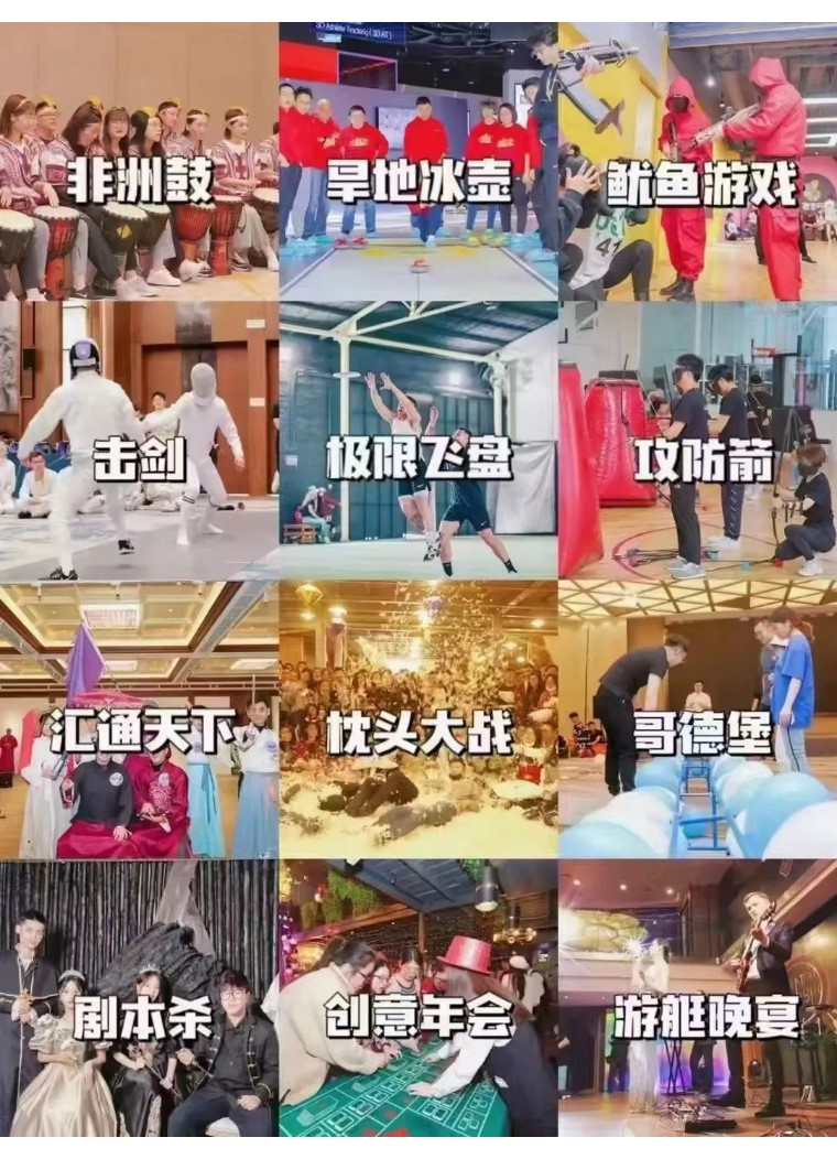 14:00-16:30 潮玩项目【推荐 :极限飞盘、魅力棒球、攻防箭、鱿鱼游戏、健球争霸、非洲鼓、击剑、冰壶、橄榄球、 F1战车等】更多项目需求个案个谈!
