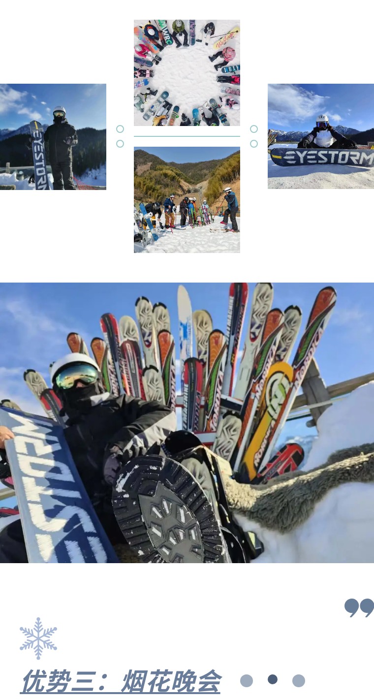 我们拥有多位持有教练资格证的单双板教练和有一定滑雪经验的领队,每年有数千人次的雪上教学,助力每一位想要加入雪圈的朋友快速入门!即使你是滑雪小白也不用畏惧,教练|滑雪领队会陪伴你度过两天一晚的滑雪时光,与你亦师亦友,有任何问题都可寻求教练|领队的帮助~