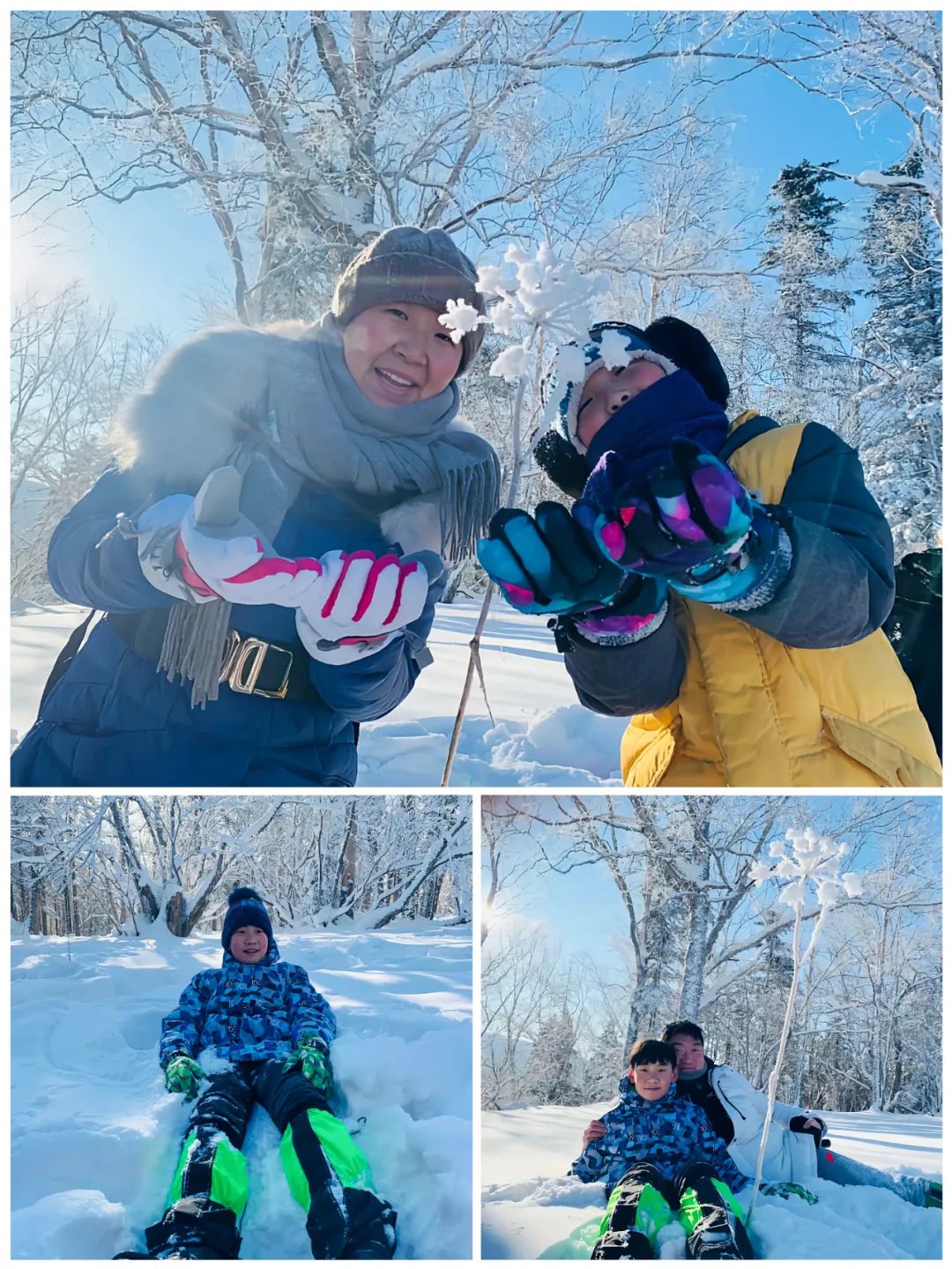 连影子都跟着滑雪圈一起蹦蹦跳跳~”