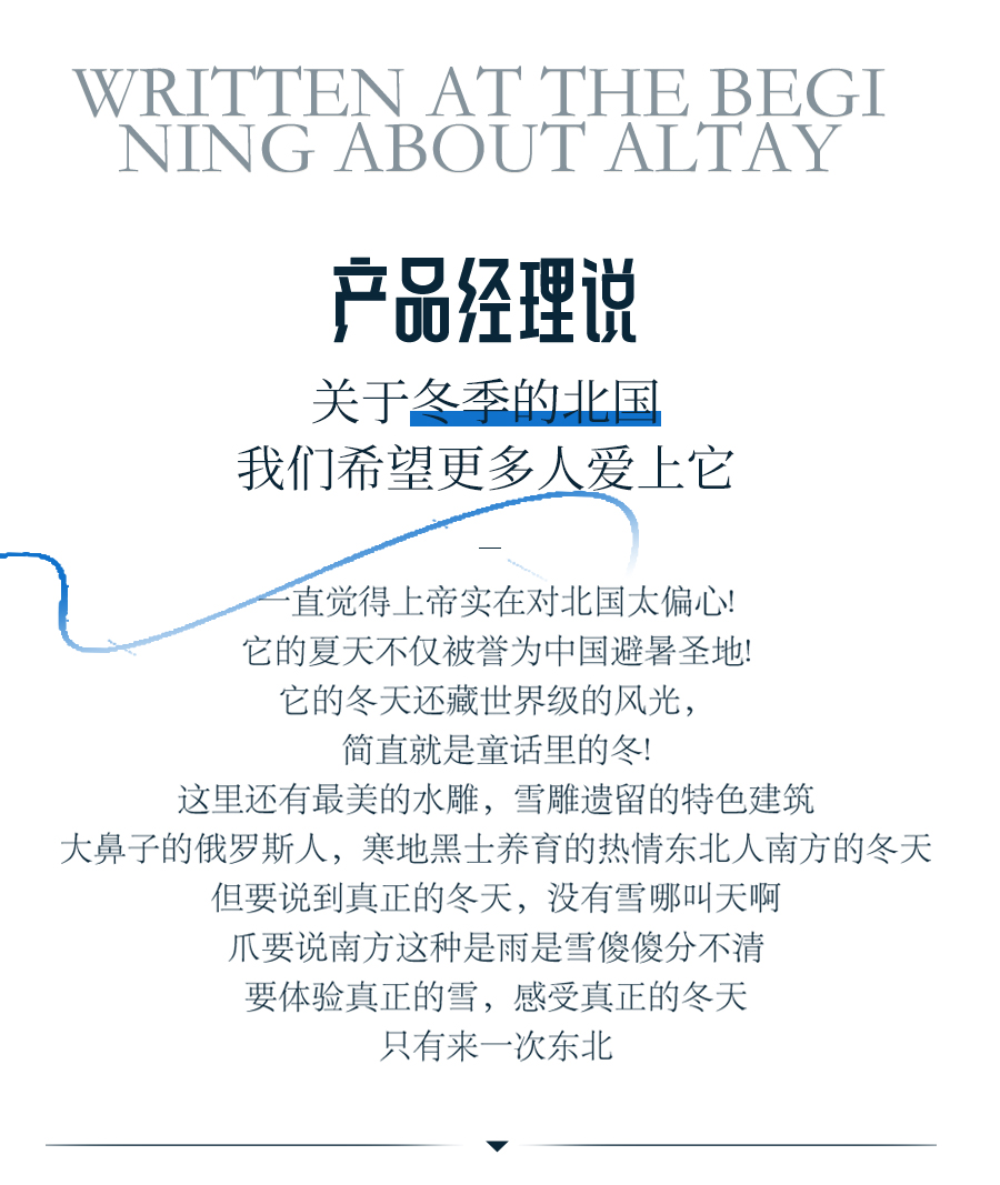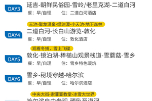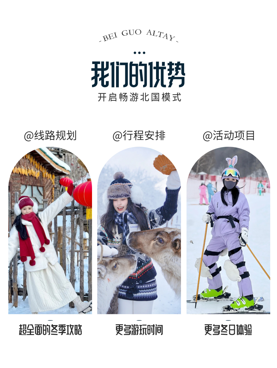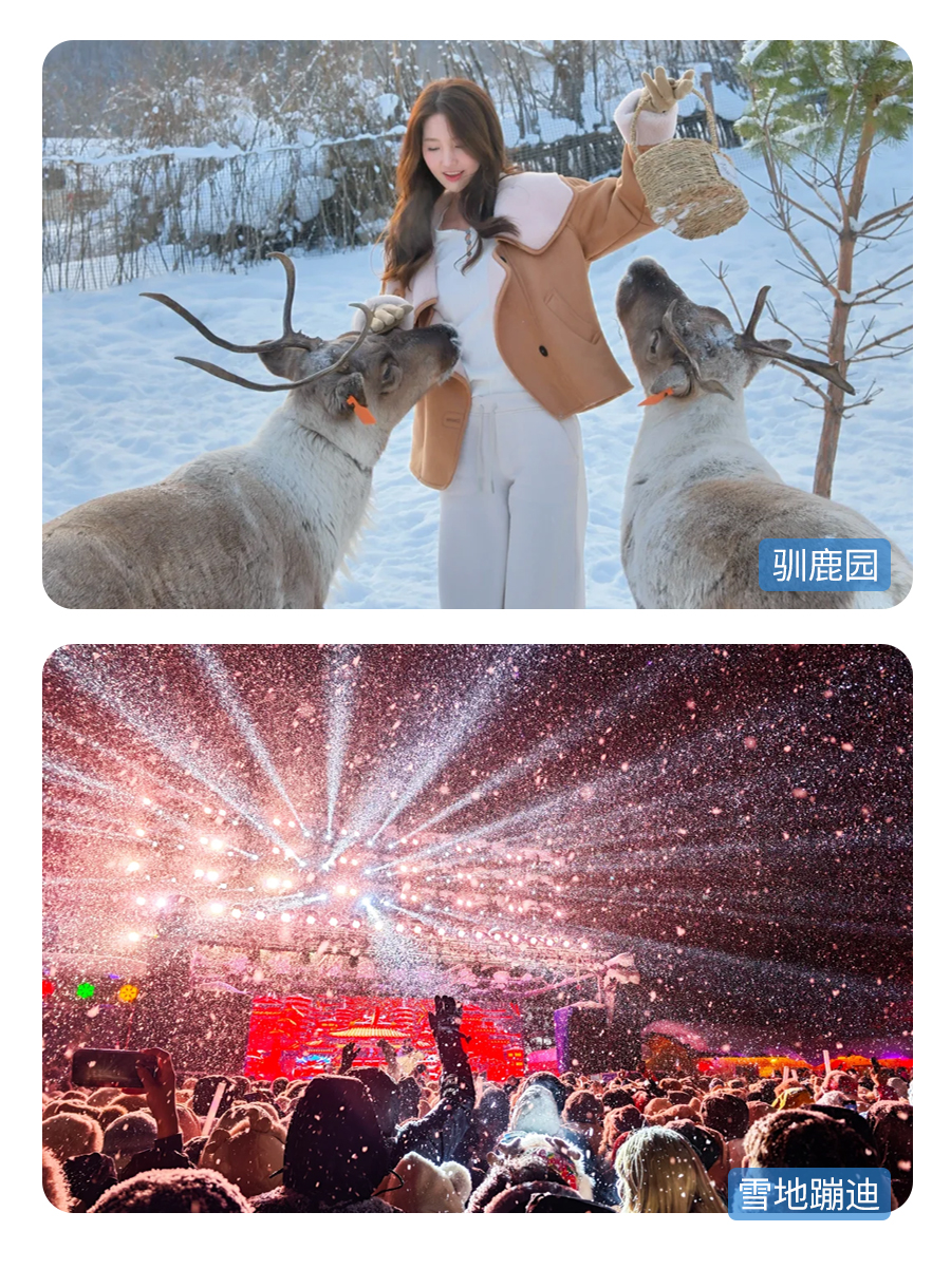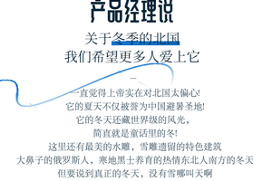 4、门票:雪岭/老里克湖门票、秘境穿越门票、镜泊湖冬捕、滑雪门票(包含雪鞋雪板雪杖使用)、雪乡门票+往返环保车、朝鲜民俗园门票、长白山门票+往返环保车+倒站车、龙江第一湾门票、圣诞村门票、北极村门票、鄂温克驯鹿园门票;