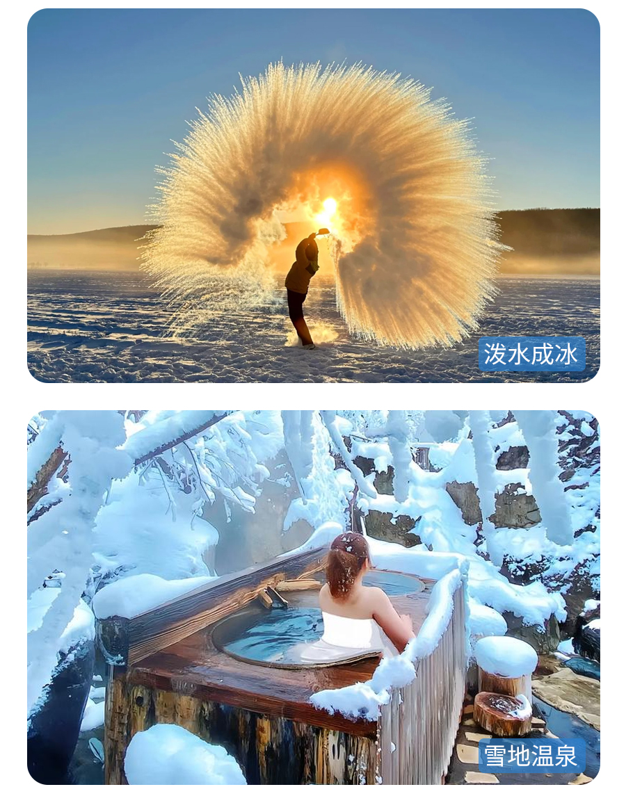 早餐后,【泼水成冰】,自备水壶要用滚烫的热水,撒向天空,大家自行安排时间,约上同伴,安排起来吧!