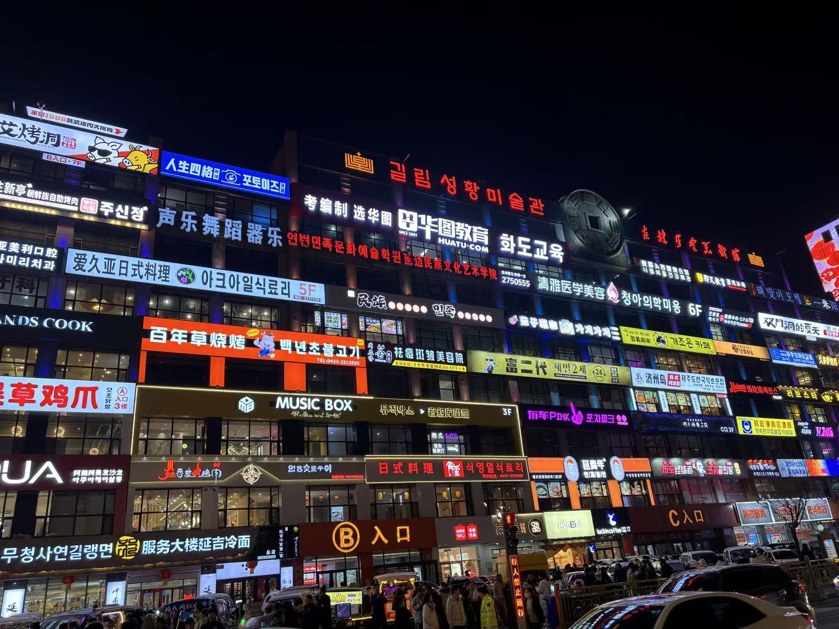 傍晚前往延边大学近几年的网红打卡地,建筑风格别具一格,来到这就像不出国来到了韩国的首尔大学。对面更有最近几年特别走红的【弹幕墙】