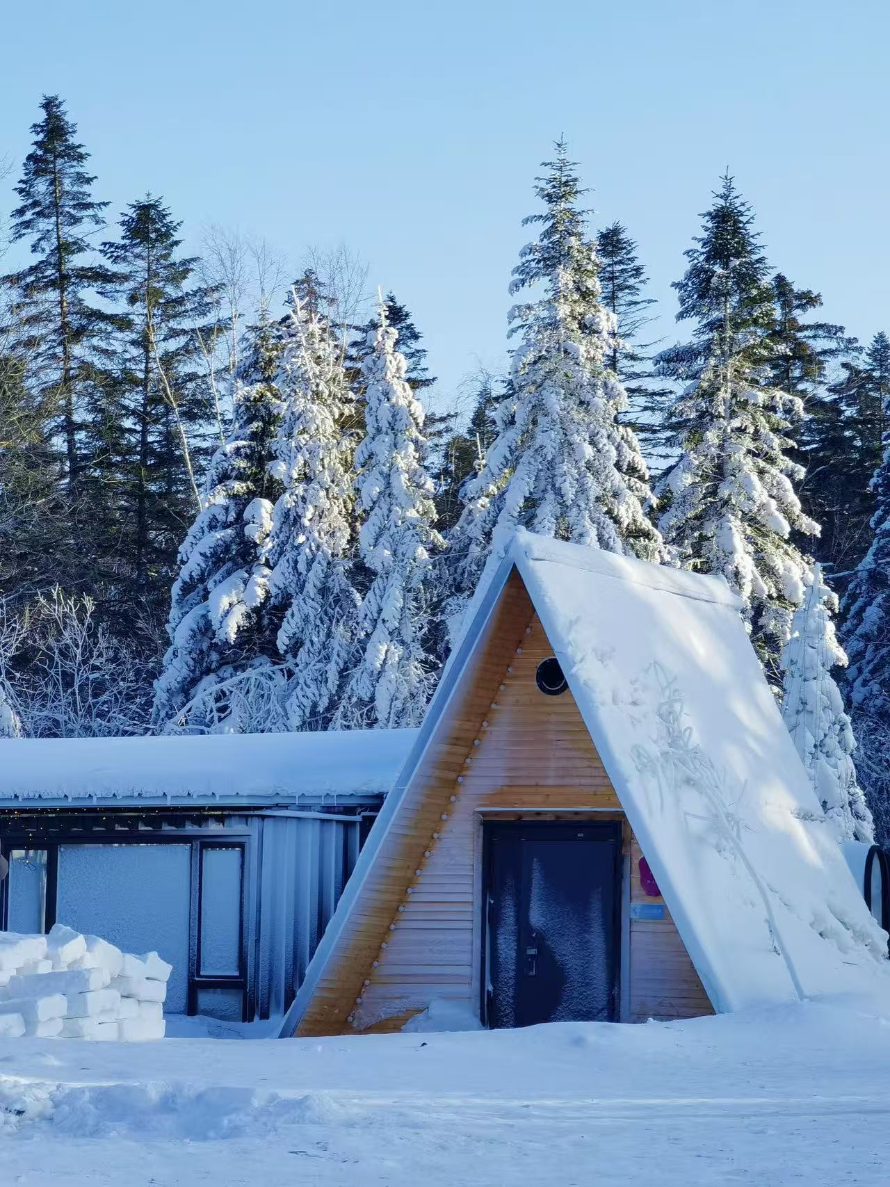 【老里克湖】在漫长的冬季里,梨花似的瑞雪❄️不停地纷飞,或大或小、或秘密或疏,粘稠的雪絮落在繁茂枝干间,自然形成了造型各异的天然雪雕与壮美的雾凇景观,让人仿佛置身于洁白的格林童话世界里。这里有打卡的童话木屋,雪地摩托,驯鹿等可以让大家打卡拍照的景色,森林深处,即是童话。