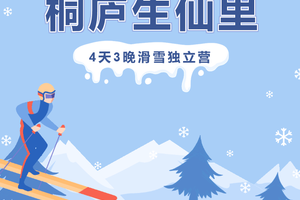 【生仙里滑雪独立营】2.2-2.5 桐庐4天3晚滑雪独立营,专业教练护航学技能、家门口的冰雪成长之旅!